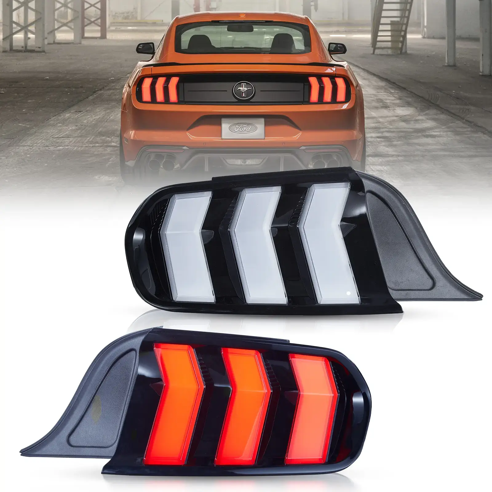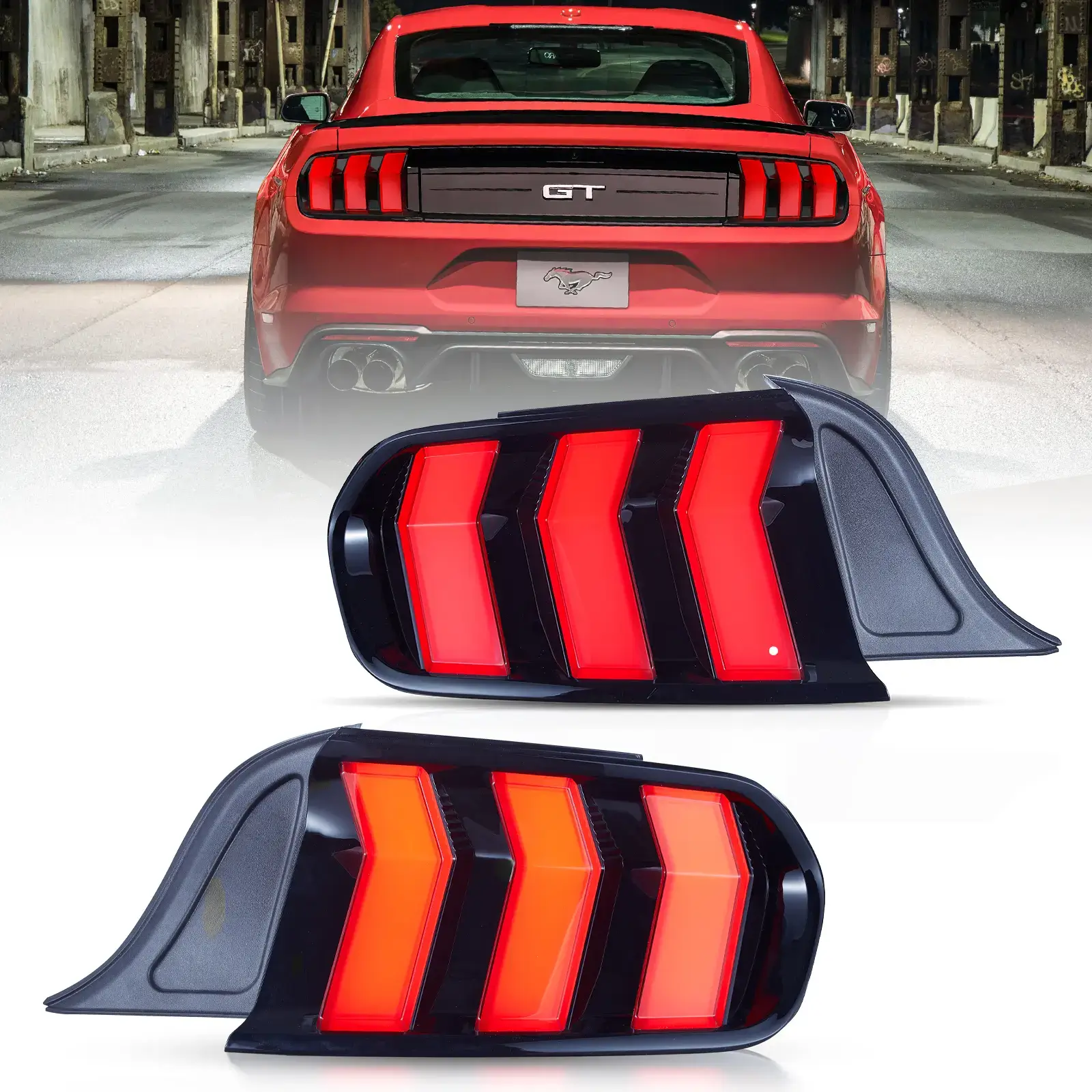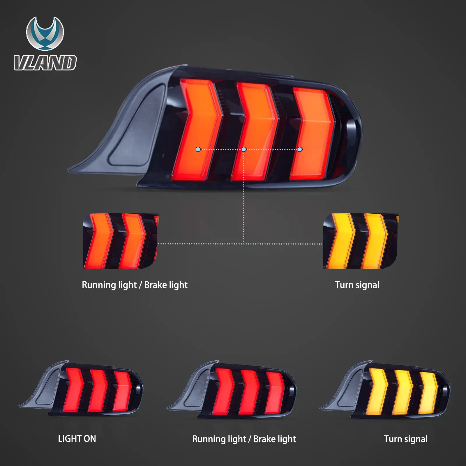 Ford Mustang 2015-2023 „Vland“ LED galiniai žibintai su 5 nuosekliais posūkių signalo režimais
