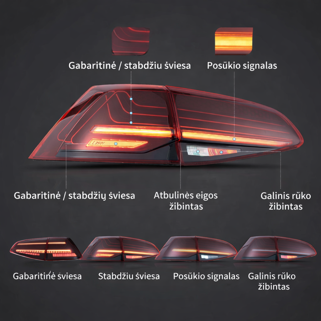 Turime dviejų dizainų versijas: raudoną (Red) ir juodą (Smoked). Tai naujausios LED technologijos galiniai žibintai su sekvenciniais (dinaminiais) posūkio signalais.